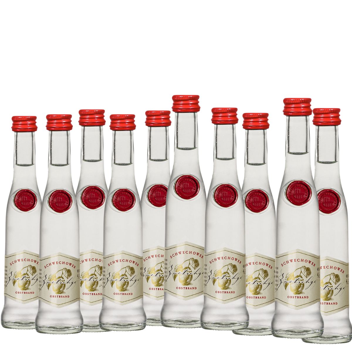 10 x Obstbrand Zwetschge 4cl (40%Vol) - Klar und unvergleichlich wie Schwechower Obstbrand: Unser Zwetschgenbrand ist nicht ohne Grund einer der beliebtesten im Sortiment. Am Gaumen fruchtig, süßlich und sanft sorgt dieser Brand für einen exzellenten Zwetschgengenuss.
