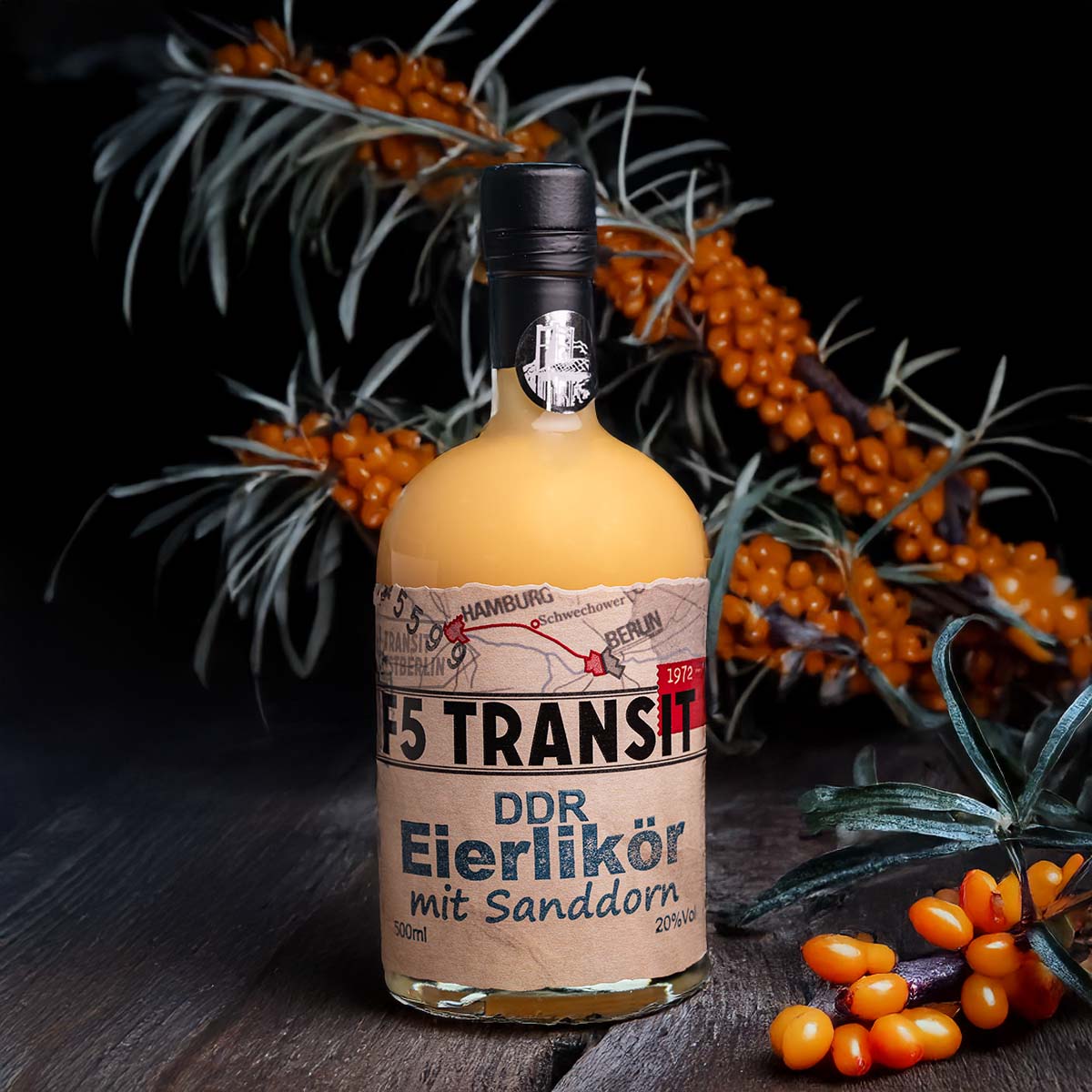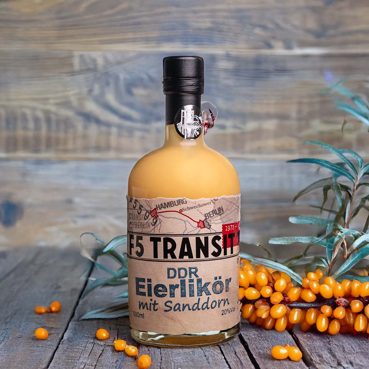 DDR Eierlikör SANDDORN 0.5l (18%Vol) No. 5599 - Eierlikör + Sanddorn - Unser DDR Eierlikör ORIGINAL 5593 verfeinert mit Mecklenburger Sanddornlikör vereint cremige Tradition mit der feinen, herben Frische der leuchtend orangefarbenen Sanddornbeeren.