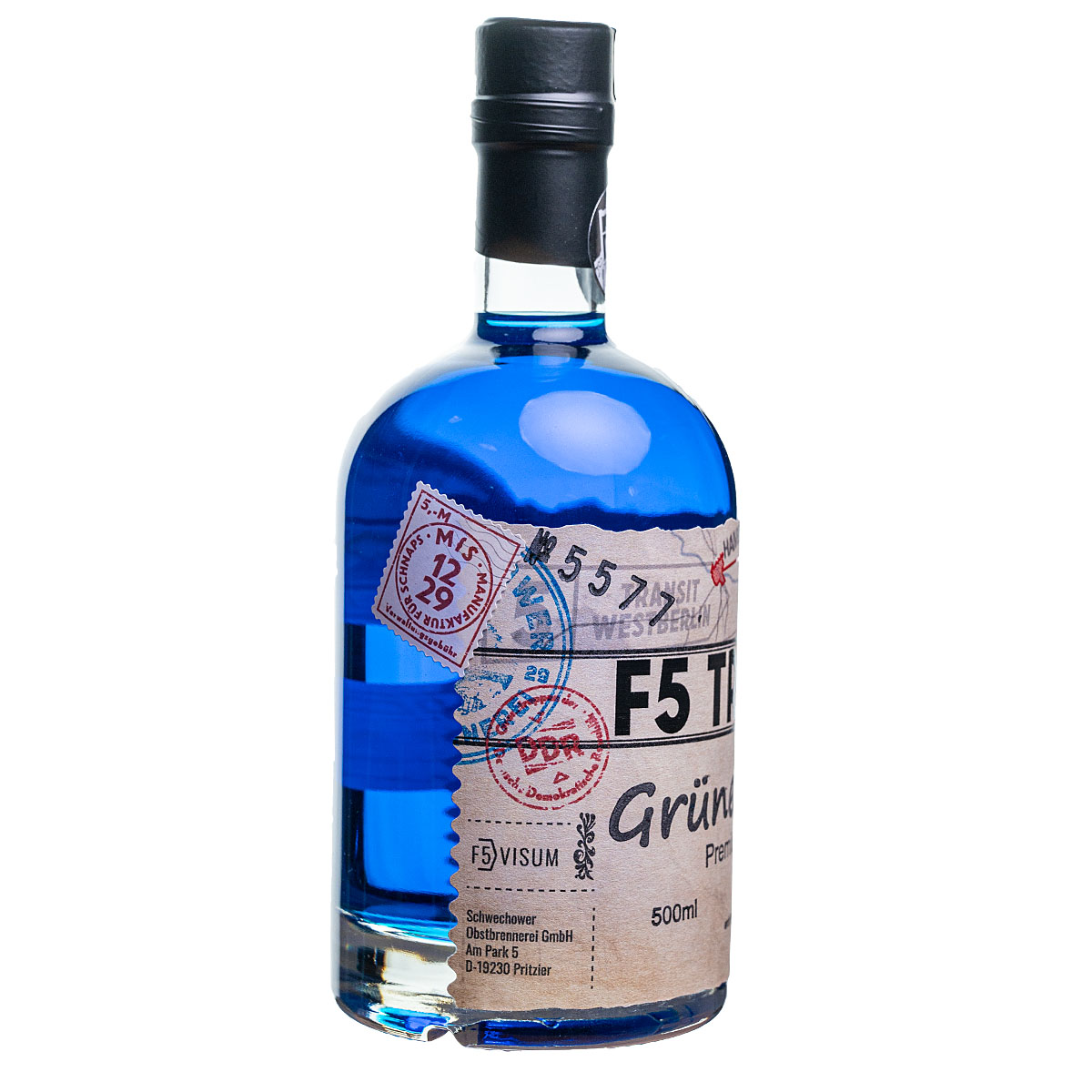 RATION - Grüne Wiese Likör 0.5l (25%Vol) No. 5577 - F5 Transit - Dieser Likör ist eine Hommage an den beliebten Cocktail aus der DDR. Der Likör besticht durch seine intensive blaue Farbe und bietet eine perfekte Balance aus Tradition und Geschmack.