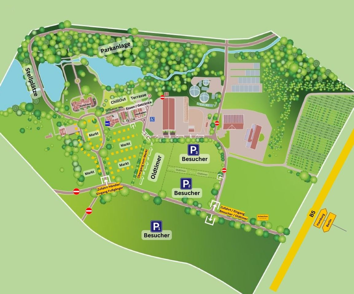 Zufahrt für Besucher über Tor 1 (Landwirtschaft). Bitte der Beschilderung folgen!