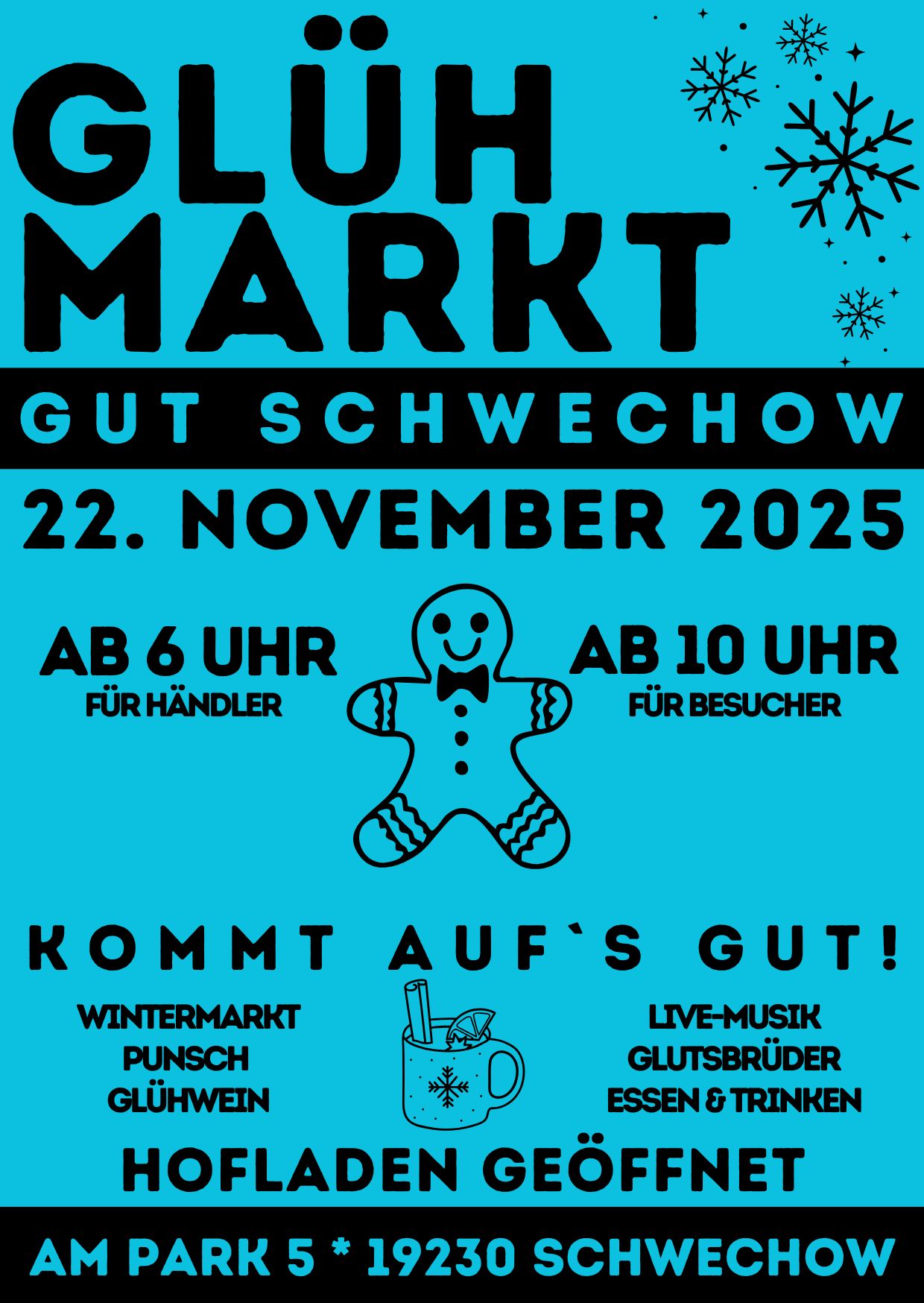 Mit dem Glühmarkt auf Gut Schwechow eröffnen wir die Punschsaison und laden dich ein, die kalte Jahreszeit mit wärmenden Köstlichkeiten zu begrüßen.