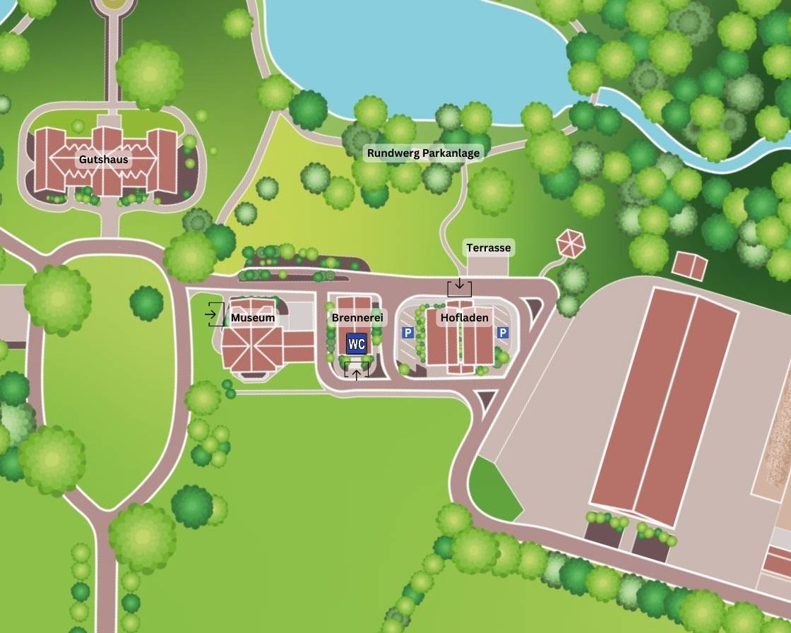 Die Zufahrt ist über Tor 1 (Gutshaus) oder Tor 2 (Landwirtschaft) möglich. An unserem Hofladen kann auch die Anmeldung für unsere Stellplätze erfolgen.