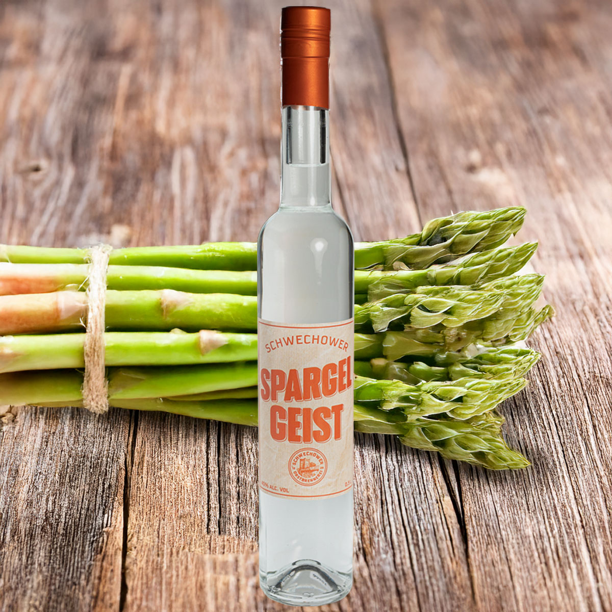Obstgeist SPARGEL 0.5l (40%Vol) - Holen Sie sich mit dem Schwechower Spargelgeist das edle Stangengemüse ganzjährig ins Glas. Der besondere Tropfen duftet charakteristisch nach frischem Spargel und überzeugt am Gaumen mit einer wundervoll würzigen Aromatik.
